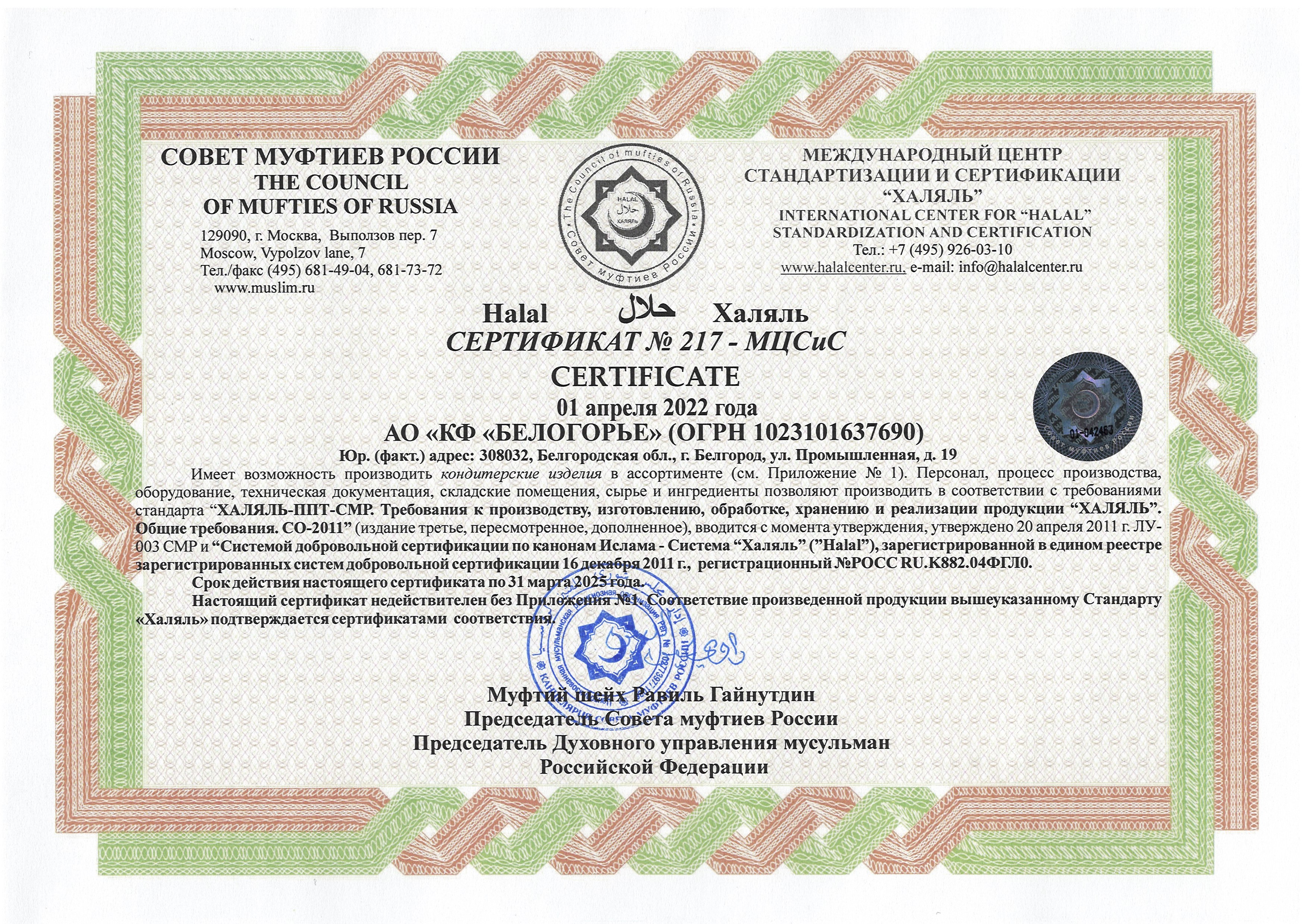 International center of standardization and certification Halal. Council of Muftis of Russia