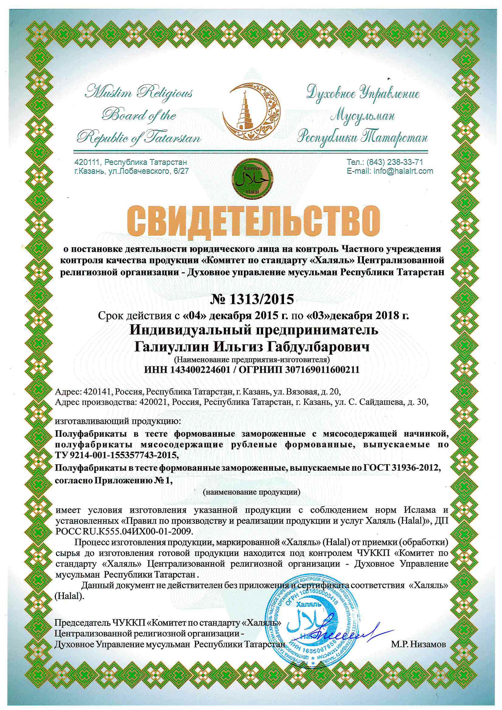 Сертфикат действителен до Dec. 3, 2018