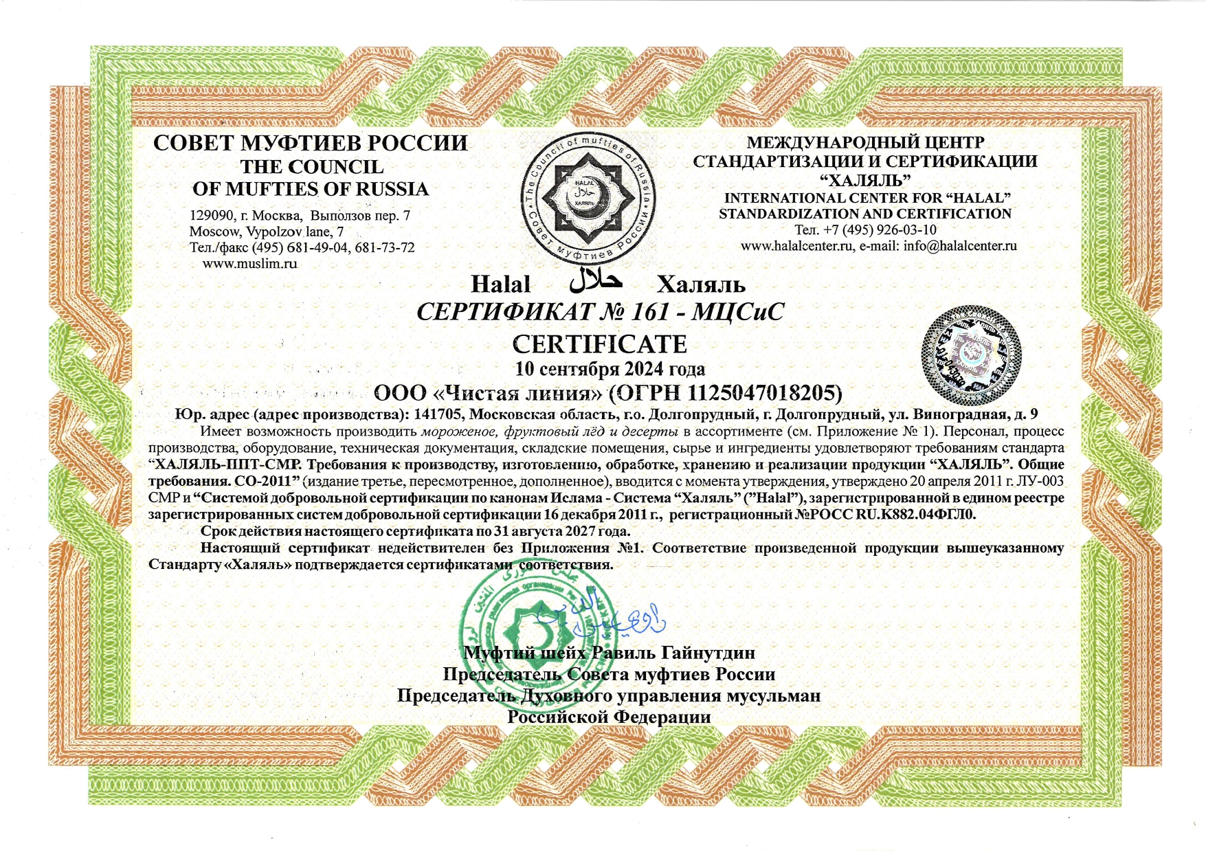 International center of standardization and certification Halal. Council of Muftis of Russia
