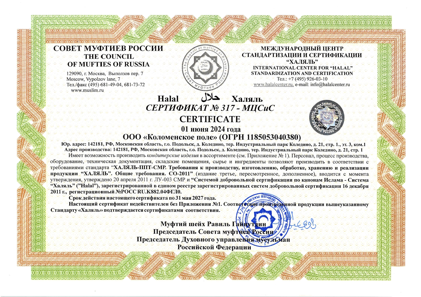 International center of standardization and certification Halal. Council of Muftis of Russia