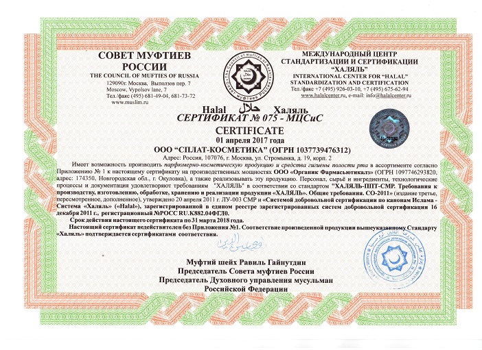 SPLAT products is made from the finest components the world's leading manufacturers in their modern, private ecofabric located in the ecologically clean district of Valdai.SPLAT production is organized on the principle of environmental awareness (ISO 14001 certification), compliance with international standards of quality management system (ISO 9001 and GMP Cosmetics), as well as the management system of occupational health and safety (OHSAS 18001).