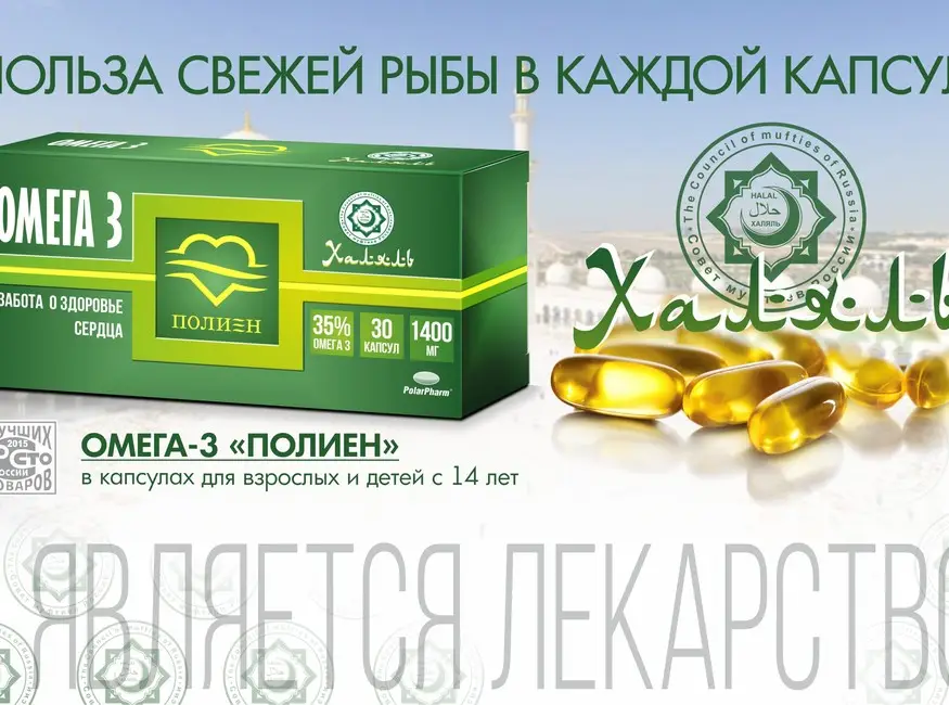 The company Polaris (GK PolarPharm) - the leading Russian manufacturer of biologically active additives.In 2015 the company "Polaris" has been successfully certified according to the standard of the Council of Muftis of Russia "Halal-PPT-SMR". The range of products "Halal represented by the following products: - Children's fish oil "Biokontur" (Halal) for children from 3 years