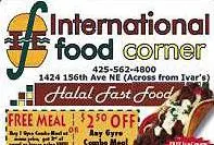 International Food Corner serves Mediterranean, Somalian, Pakistani, and Indian. All Zabiha-Halal food served.