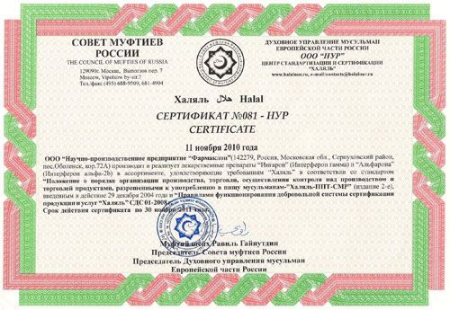 In 2006, OOO NPP PHARMACLON® received a license (№ 99-04-000133 from 19.01.2006) on the production and implementation of the first and only currently in Russia, is patented and officially registered domestic medicinal product on the basis of gamma-interferon "INGARON®" (interferon-gamma human recombinant) in two dosage forms - in the form of a lyophilisate for preparation of solution for intramuscular and subcutaneous administration and in the form of a lyophilisate for preparation of solution for intranasal administration.