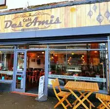 Join us in cafe Des Amis enjoy the best freshly made middle-eastern food such as falafel hummus shawarma kufta and lots more. Don't forget to try our desserts from chocolate fudge cake Assorted Danish pastries cheese cakes and famous Sinsation pie to our tempting hand-made baklawa. We also make fresh fruit juices and special fresh fruit cocktail smoothies as well as traditional Arabic and Turkish coffee. We pride ourselves in providing an identical experience to the Shisha Cafes of the Middle East.