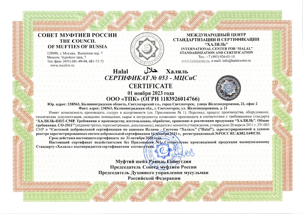 Мы не несем ответственности за услуги, реализуемые организациями, находящимися у нас в базе. Просьба дополнительно уточнять у лиц, предоставляющих продукцию халяль. (59072)