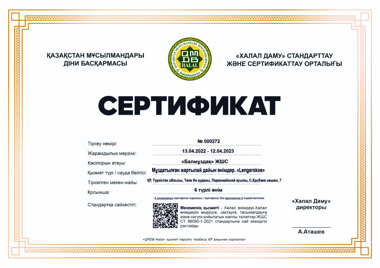 Мы не несем ответственности за услуги, реализуемые организациями, находящимися у нас в базе. Просьба дополнительно уточнять у лиц, предоставляющих продукцию халяль. (48945)