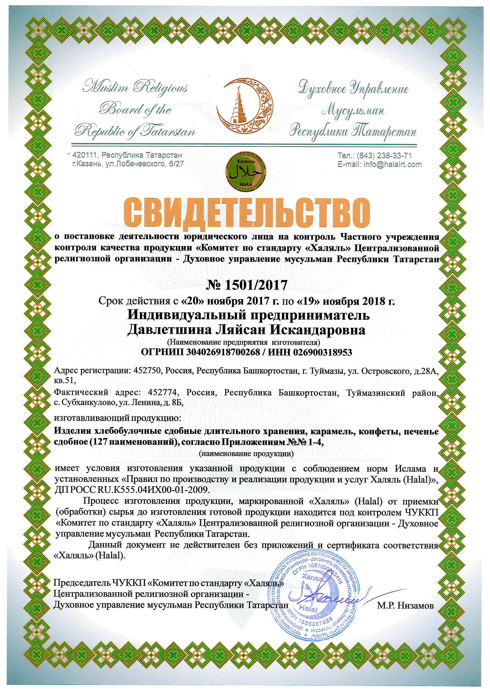 Сертфикат действителен до Nov. 19, 2018